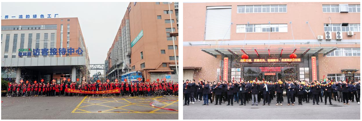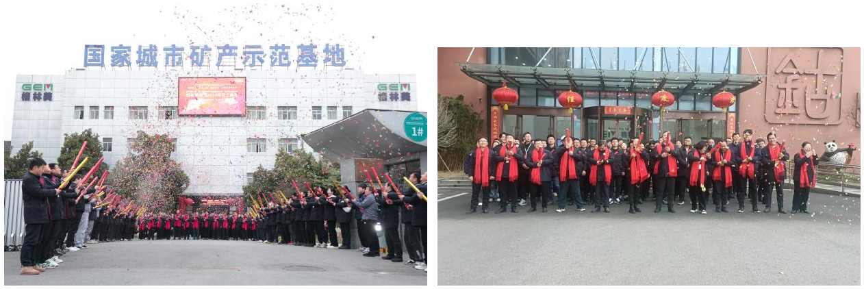 上午8時48分,各園區舉行開工儀式,鞭炮齊鳴、禮花沖天,恭賀開工大吉、龍行大運,在喜慶和歡騰的氣氛中,奮發向上的格林美人以嶄新的精神面貌迎接2024年,吹響新春“龍騰虎躍”的號角。