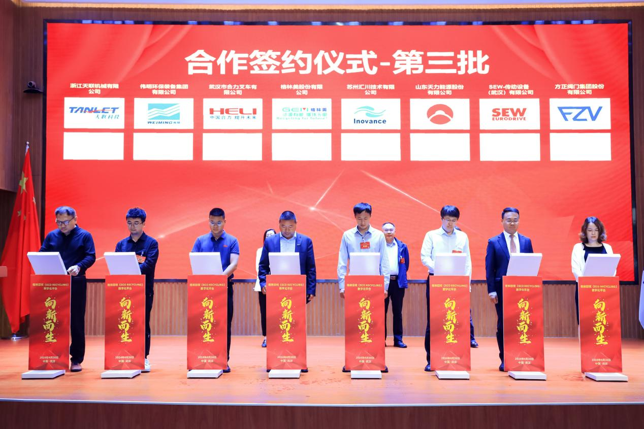 活動(dòng)上,格林美與梅特勒托利多、艾默生、景津裝備、島津、SEW-傳動(dòng)設(shè)備、順豐物流、匯川技術(shù)、視源電子、特銳德電氣、英威騰電氣、合力叉車、偉明環(huán)保等21家跨國(guó)公司、上市公司攜手共謀發(fā)展,簽訂《共同推動(dòng)大規(guī)模設(shè)備更新和消費(fèi)品以舊換新戰(zhàn)略合作協(xié)議》,向綠而行,向新而生,利用各自資源優(yōu)勢(shì),共建數(shù)字化回收平臺(tái),建立逆向回收物流供應(yīng)鏈服務(wù)體系,開展設(shè)備更新升級(jí)再制造,建設(shè)再制造設(shè)備和二手設(shè)備的線上線下展示與供應(yīng)鏈銷售大市場(chǎng)體系,共同探索合作機(jī)會(huì)和合作模式,在國(guó)家大規(guī)模設(shè)備更新和消費(fèi)品以舊換新戰(zhàn)略中發(fā)揮模式引領(lǐng)與骨干企業(yè)作用,共同書寫科技創(chuàng)新與產(chǎn)業(yè)發(fā)展的嶄新篇章。