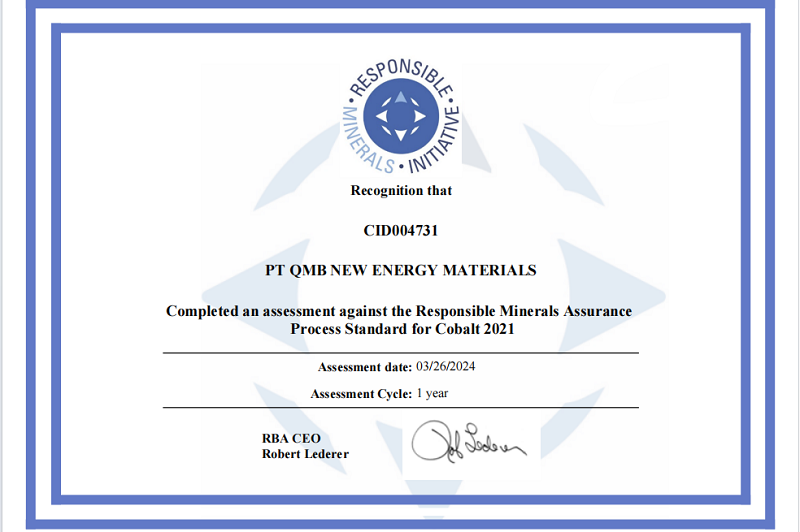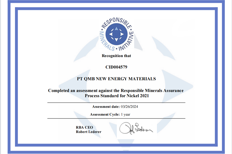 2024年8月,負責任礦產倡議(The Responsible Minerals Initiative,簡稱RMI)官方網站發布消息,青美邦新能源材料有限公司成功通過負責任礦產保證流程(Responsible Minerals Assurance Process,簡稱RMAP)審核,成為印度尼西亞首家同時對鎳、鈷金屬供應鏈開展礦產供應鏈盡責管理并通過 RMAP 審核的冶煉企業。