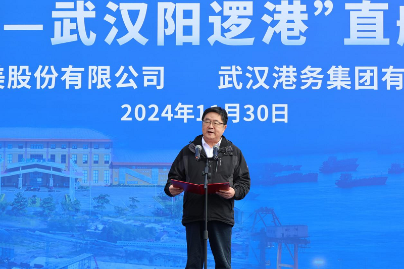 湖北港口集團有限公司黨委副書記、總經理李小明致辭,他表示,此次印尼直航航線的開辟,開創了印尼直達湖北“一船到底”的運輸新模式,將有效降低雙邊物流成本,深化湖北與印尼及中西部地區的經貿合作。格林美作為全球資源循環領域的佼佼者,選擇陽邏港布局直航貨運航線,體現了對湖北港口集團的信任。湖北港口集團將持續提升管理水平和服務質量,拓展服務功能,為格林美提供一流高效的物流服務,充分發揮陽邏港在湖北物流供應鏈體系中的核心樞紐功能,助力全省構建一流的綠色產業集群。