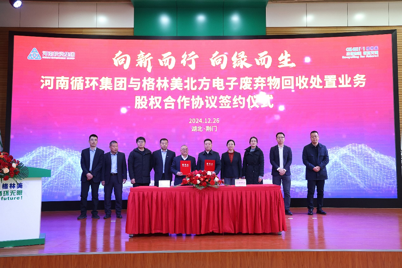 2024年12月26日上午,“向新而行,向綠而生”主題格林美與河南循環科技產業集團有限公司(以下簡稱“河南循環集團”)關于格林美控股孫公司股權合作協議簽署儀式于格林美荊門園區國際會議廳隆重舉行。河南循環集團董事長李卓英先生、格林美集團董事長許開華教授出席并簽署協議,新華社、上海證券報、東方證券等媒體金融機構受邀參加儀式。