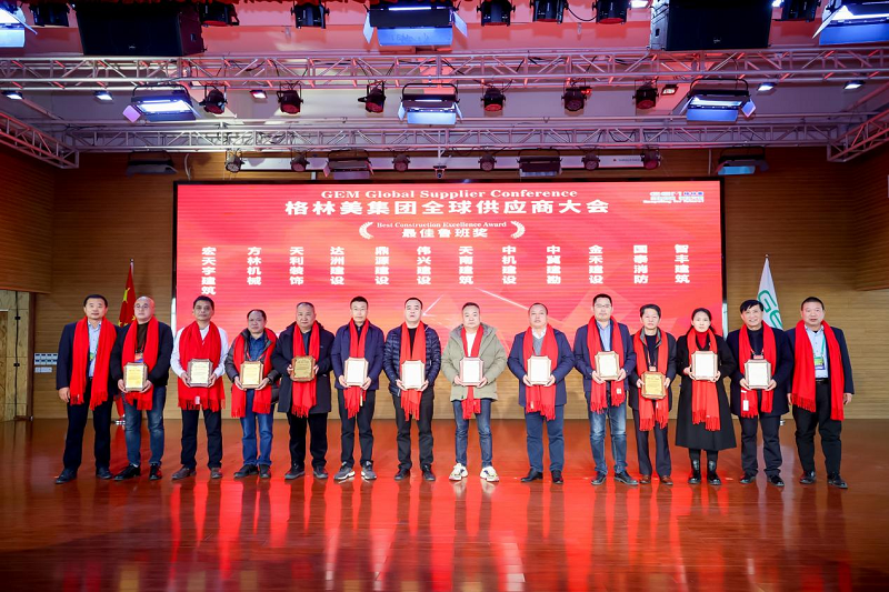 ▲ 格林美集團(tuán)監(jiān)事會(huì)主席魯習(xí)金先生(右一)為獲獎(jiǎng)供應(yīng)商代表頒發(fā)《最佳魯班獎(jiǎng)》