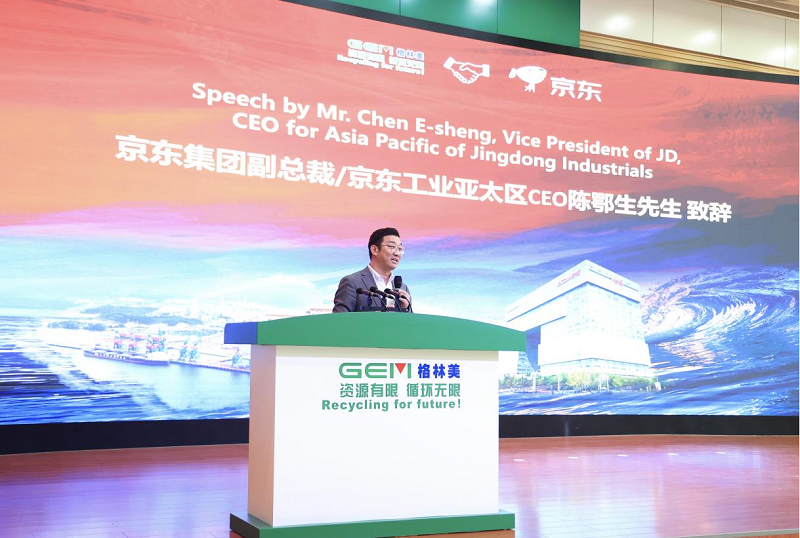 陳鄂生副總裁在致辭中,首先對格林美響應京東“2000億元出口轉內銷”扶持計劃表達了感謝。他提到了京東在國際化方面的快速進展,并強調了與格林美等企業的合作對京東全球戰略的重要性,并對未來的合作和全球化夢想表示期待。