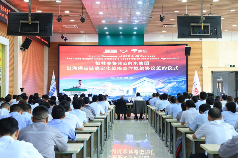 ▲ 格林美與京東集團簽署《出海供應鏈穩定化戰略合作框架協議》