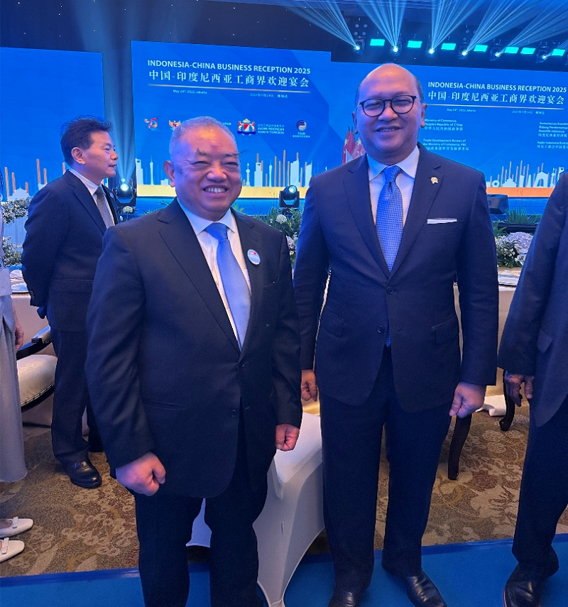 圖7 格林美董事長許開華教授與印尼投資部部長Rosan Roeslani先生在中印尼工商會晚宴合影