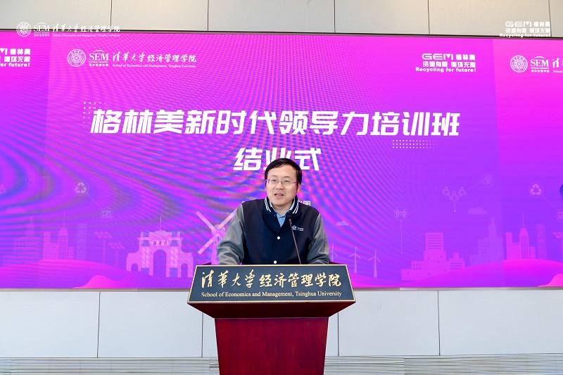 何平教授也代表清華大學經管學院為全體學員送上了結業寄語,他囑咐新時代領導力學員們一定要將在清華學習收獲的視野、能力、情誼轉化為應對未來挑戰的智慧與底氣,以自己的成長為格林美提供源源不斷的綠色動能;何平教授同時希望,學員們做知行合一的踐行者,將戰略洞察、實戰工具、團隊精神帶回一線、融入實踐,成為格林美發展的引擎。