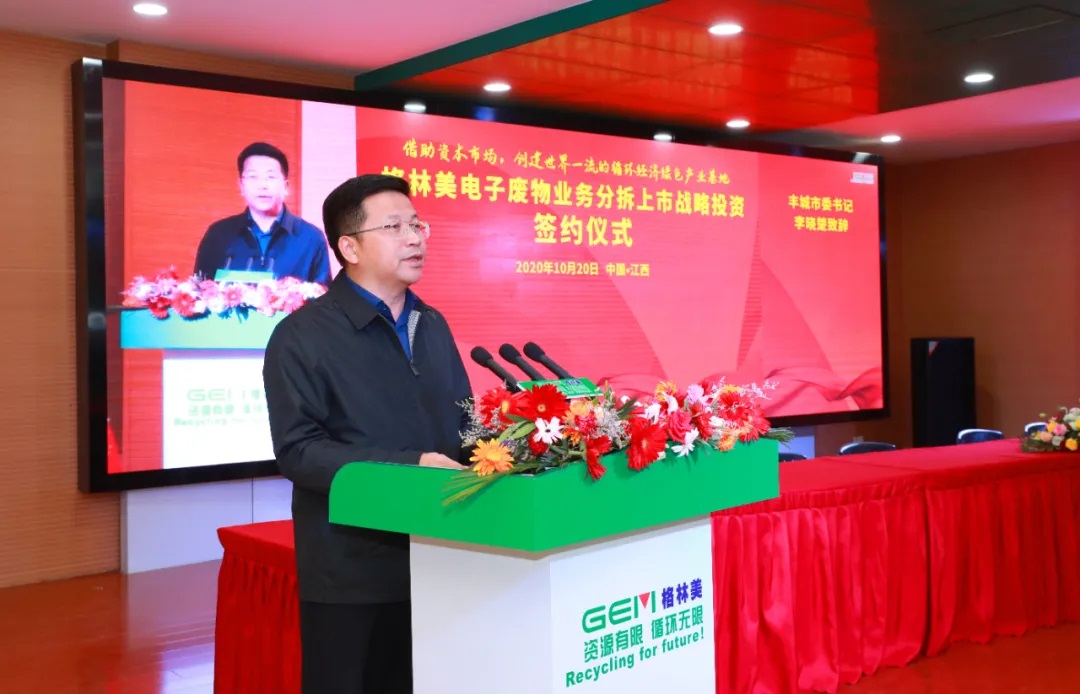 簽約儀式上,李曉楚發表了熱情洋溢的致辭。他說,格林美公司與豐城市政府及格林美戰略投資者合作簽約儀式的舉行,標志著格林美集團在豐城的二次創業,江西格林美啟動分拆上市、建設世界級循環經濟產業園的戰略部署拉開帷幕。格林美作為全國循環經濟領軍企業,被譽為中國城市礦山第一股,十年來,公司在豐城從租用小廠房,發展到現在的四個廠區,成為集團的重要生產基地。在格林美等一批龍頭企業的帶動下,豐城循環經濟也由小到大,預計到2023年可望實現年產值超千億元。豐城循環經濟園區也正在成為中東部地區發展再生資源最具投資價值和發展潛力的首選地。
