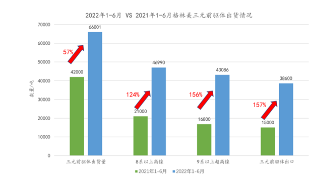 今年上半年,動力電池用三元前驅體材料出貨量達到66,001噸,位居世界前二,同比大幅增長57%,貢獻營收75.18億元,同比增長達147.82%。其中,9系超高鎳產品出貨量43,086噸,占出貨總量的近65%,位居世界前列。這標志著格林美公司三元前驅體產品的全面國際化。公司動力電池回收業務上半年實現營收2.57億元,同比增長368.64 %,回收拆解動力電池8,452噸(1.08GWh),同比增長 146%,動力電池回收跨入萬噸級時代。