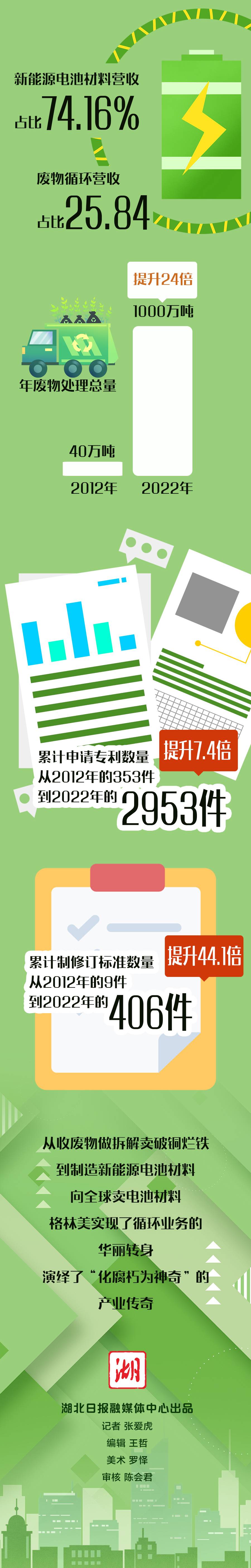 格林美股份有限公司于2001年12月28日在深圳注冊成立,2010年1月登陸深圳證券交易所中小企業板,股票代碼 002340 ,總股本41.49億股,凈資產98.78億元,年銷售138億元以上,在冊員工5000余人。