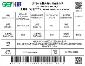 一、同意荊門市格林美新材料有限公司生產(chǎn)“GEM格林美”牌電解鎳(電積工藝,Ni99.96)在我所注冊,注冊產(chǎn)能3萬噸,執(zhí)行標準價。