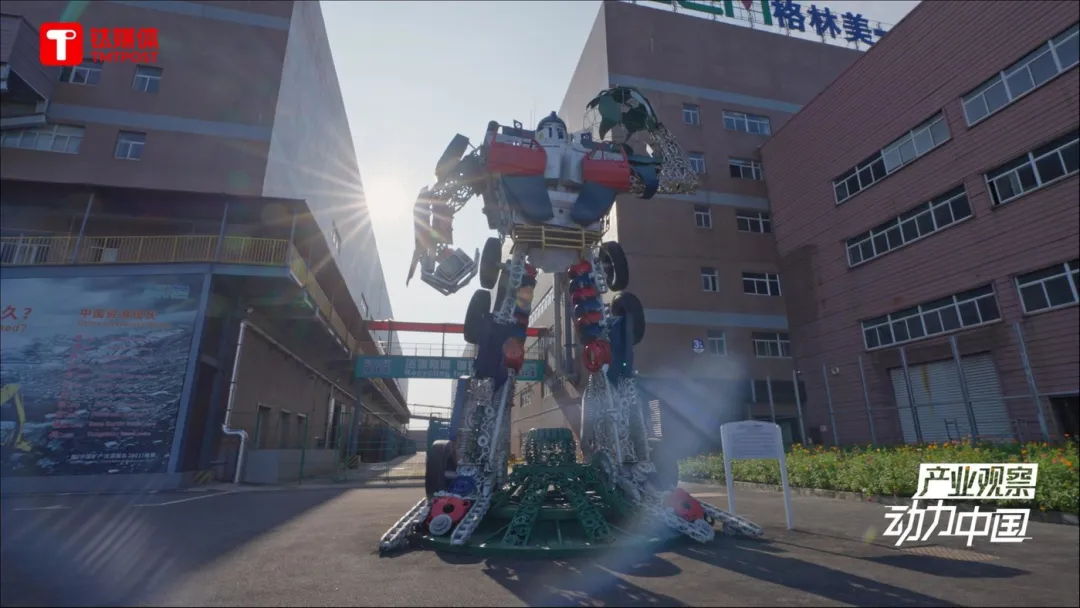 武漢,格林美廠區(qū)內(nèi)部,由報(bào)廢汽車零件建成的機(jī)器人裝置