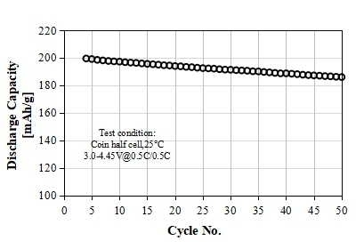 L-6003D產品特點:單晶或類單晶形貌,高電壓,高容量