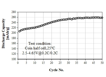 LRM35M產(chǎn)品應(yīng)用:用于方型或軟包電池,4.65V下0.2C放電258.9mAh/g,可用于動(dòng)力汽車或電動(dòng)工具
