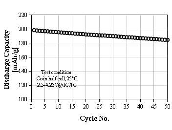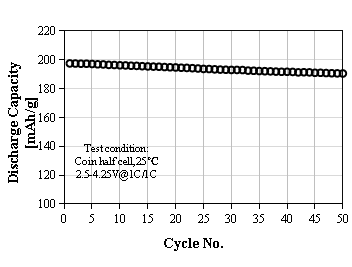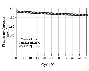 L-8950產品特點:大小多晶混合二次球,高容量,長循環