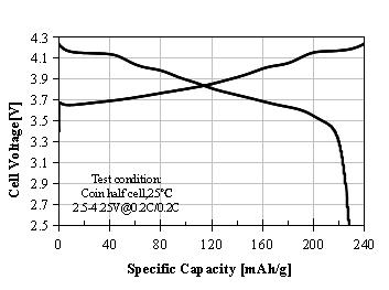 L-9250產品應用:用于圓柱或軟包電池,4.20 V下測試,0.2C放電比容量為215.6mAh/g,循環性能:1C/1C,1000周≥80%,可用于電動汽車或電動工具。