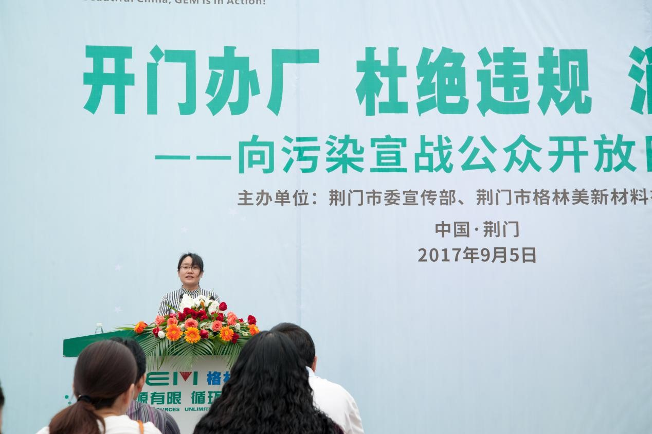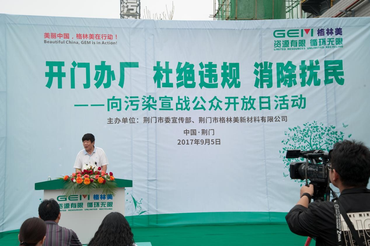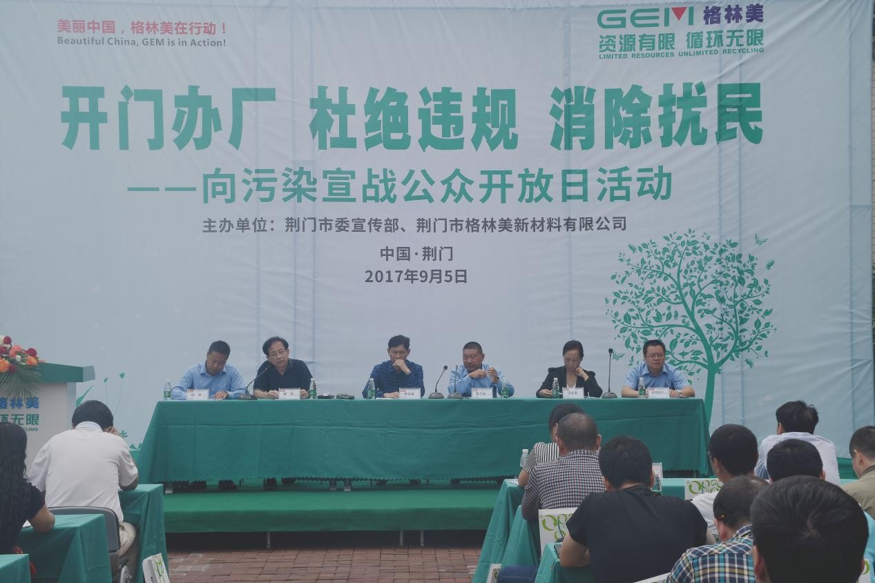 2017年9月5日上午,由荊門市委宣傳部、荊門市格林美新材料有限公司(以下簡(jiǎn)稱“荊門格林美”)聯(lián)合舉辦了“開門辦廠、杜絕違規(guī)、消除擾民,向污染宣戰(zhàn)”公眾開放日活動(dòng)。荊門市委宣傳部副部長(zhǎng)歐曉平、荊門市環(huán)保局副局長(zhǎng)付正洪等政府部門領(lǐng)導(dǎo),中國(guó)循環(huán)經(jīng)濟(jì)協(xié)會(huì)副會(huì)長(zhǎng)李新民、中國(guó)物資再生協(xié)會(huì)副秘書長(zhǎng)張艷會(huì)等行業(yè)協(xié)會(huì)領(lǐng)導(dǎo),人民日?qǐng)?bào)、新華社、中國(guó)環(huán)境報(bào)、中國(guó)證券報(bào)、每日經(jīng)濟(jì)新聞、湖北日?qǐng)?bào)、湖北衛(wèi)視、湖北之聲、荊門日?qǐng)?bào)、荊門電視臺(tái)、荊門晚報(bào)、荊門新聞網(wǎng)、大楚荊門、荊門社區(qū)網(wǎng)、云上荊門、荊楚荊門網(wǎng)等媒體記者以及環(huán)保社會(huì)監(jiān)督員、附近居民等參加了本次活動(dòng)。活動(dòng)由荊門高新區(qū)?掇刀區(qū)副區(qū)長(zhǎng)鄒茹粘主持。