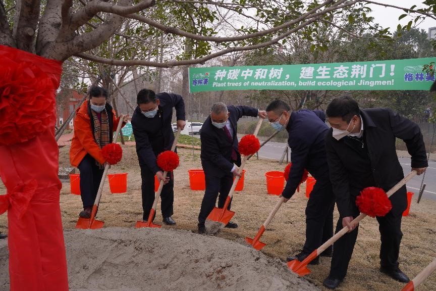 圖1 格林美集團黨委書記、董事長許開華教授與荊門市委書記胡亞波共植“碳中和樹”