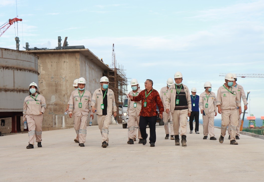 金秋的九月,像一個(gè)神奇的丹青妙手,在印度尼西亞蘇拉威西這座以紅土鎳礦聞名全球、形似“K”的投資熱島上潑墨出一幀多彩的青美邦畫(huà)卷:器宇軒昂的鎳工業(yè)博物館、智慧集成的中控中心、國(guó)際一流的紅土鎳礦研發(fā)中心、大氣磅礴的洗選礦系統(tǒng)、熱氣騰騰的高壓酸浸產(chǎn)線、錯(cuò)落有致的CCD逆流洗滌車間、繁忙有序的成品車間……格林美青美邦項(xiàng)目一期已經(jīng)成功建成,達(dá)到世界一流水平。在農(nóng)歷中秋佳節(jié)即將來(lái)臨之際,集團(tuán)黨委書(shū)記、董事長(zhǎng)許開(kāi)華教授不懼辛勞親赴印尼項(xiàng)目現(xiàn)場(chǎng),視察項(xiàng)目一線、慰問(wèn)青美邦全體建設(shè)勇士并主持召開(kāi)了青美邦鎳資源項(xiàng)目一期投料調(diào)試階段總結(jié)會(huì)。